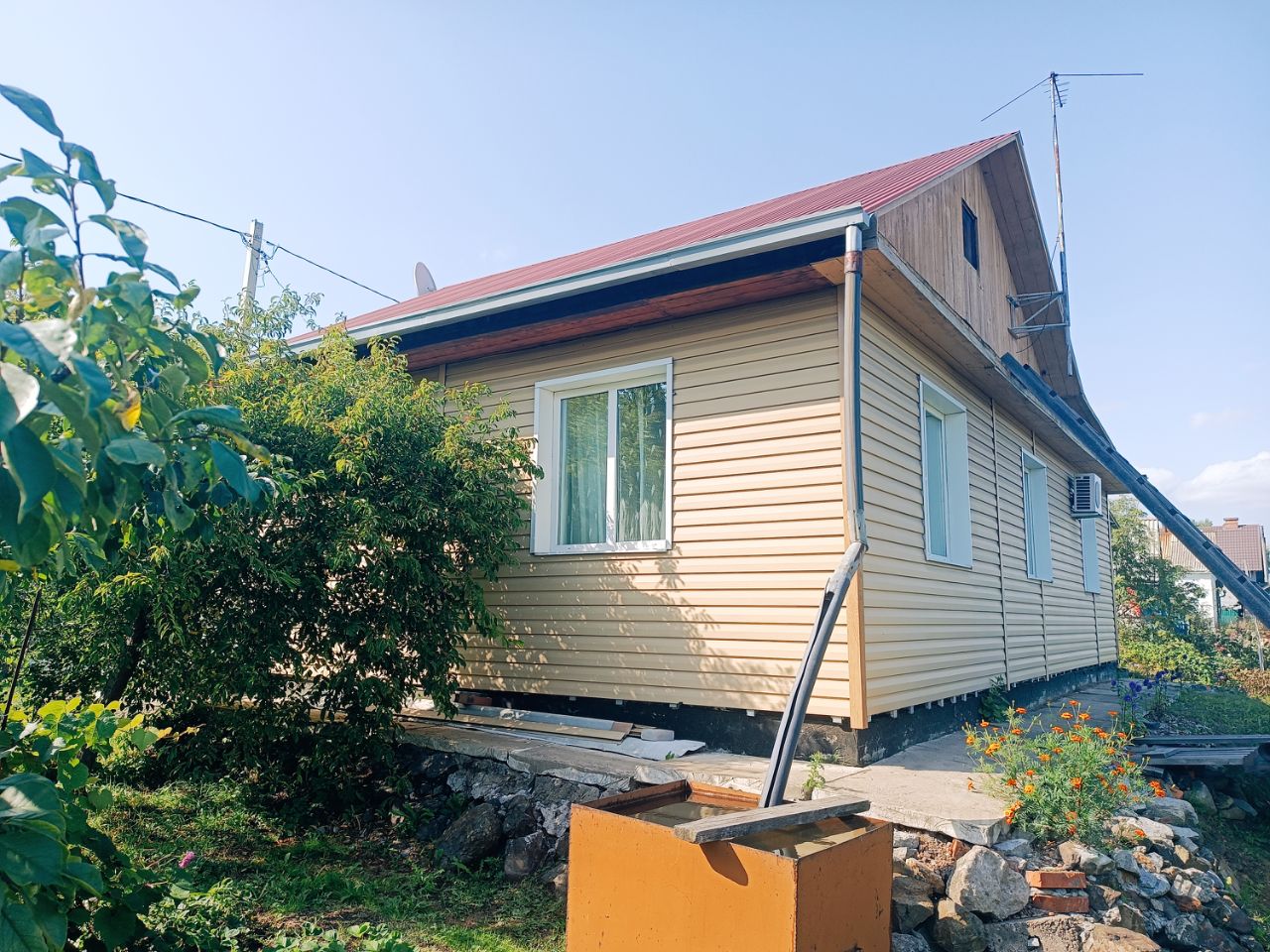 Продам жилой дом 2011 г п, тип - брус, обшит сайдингом , площадью 75 кв м, в отличном состоянии. Ремонт (натяжные потолки, софиты, алюминиевые радиаторы, пластиковые окна, линолеум, котёл).Высота потолков 2,6 м. Гараж с погребом (кирпичный). Шамбо 5 куб. Земельный участок 13,5 с/с. (состоит из двух участков которые в собственности) Участок сухой, имеет насаждения, теплица, плодово ягодные деревья. Крыша ( металлочерепица), забор металлический. Фактически участок состоит из двух смежных участков а так же на них две постройки: сам дом основной 73,2 кв.м. а так же на участке есть одноэтажный жилой дом с кадастровым номером по документам 30.4 кв.м. Т.е. продается два земельных участка и два жилых дома
