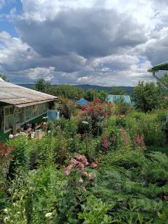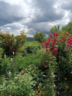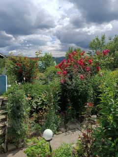 Имеется много плодово-ягодных насаждений: клубника, малина, яблони, абрикосы, слива, разные сорта смородины, крыжовник, кусты плетистых роз.