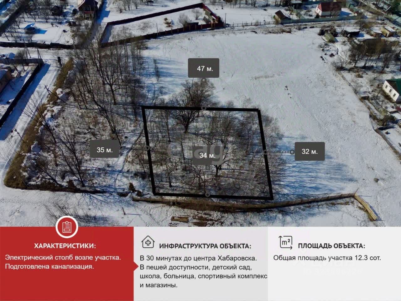 Продается отличный земельный участок общей площадью 12,3 соток находится всего в 30 минутах от центра Хабаровска.