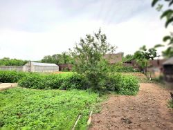 Участок ровный, ухоженный, с садовыми и огородно-овощными насаждениями, теплицей. Имеется вольер для собаки.