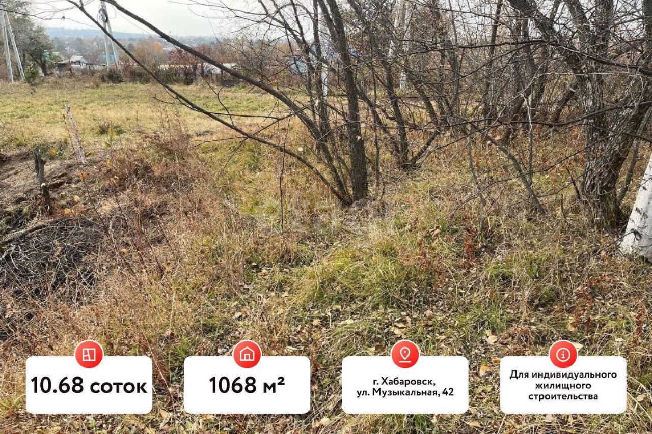 Продаётся земельный участок 10.68 соток (1068 м²) под индивидуальный жилой дом в черте города Хабаровска.