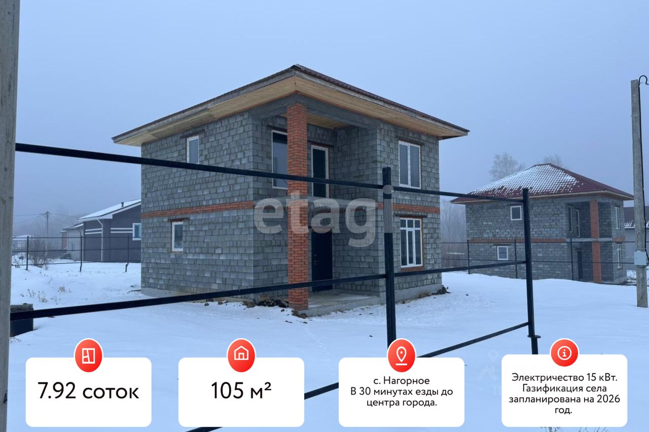 Продается Дом в селе Нагорное, общей площадью 105 м² из экологичных и долговечных отсевоблоков. Возведен на надежном монолитном плитном фундаменте, готов к завершению внутренней отделки и заселению. Дорога к селу Нагорное идёт на север от автобусной остановки "Полярная" в Краснофлотском районе города Хабаровска. Расстояние от "Полярной" до села около 1,5 км. Заезд через шлагбаум.