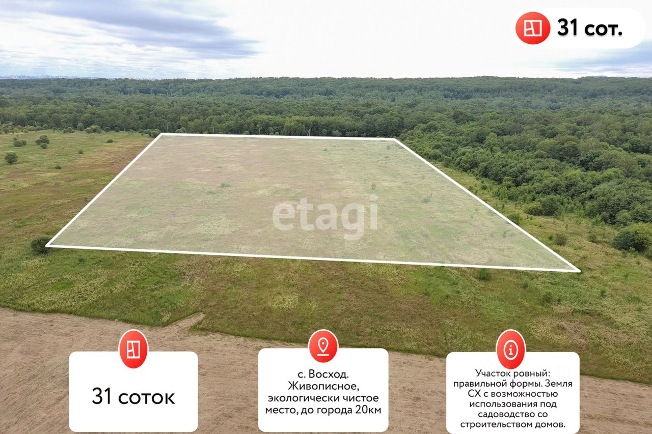 Предлагается к продаже земельный участок, площадью 3,1 Га, расположенный по адресу: Хабаровский край, Хабаровский район, с. Восход, ул. Центральная, земли АКХ Краснореченская сельскохозяйственного назначения.