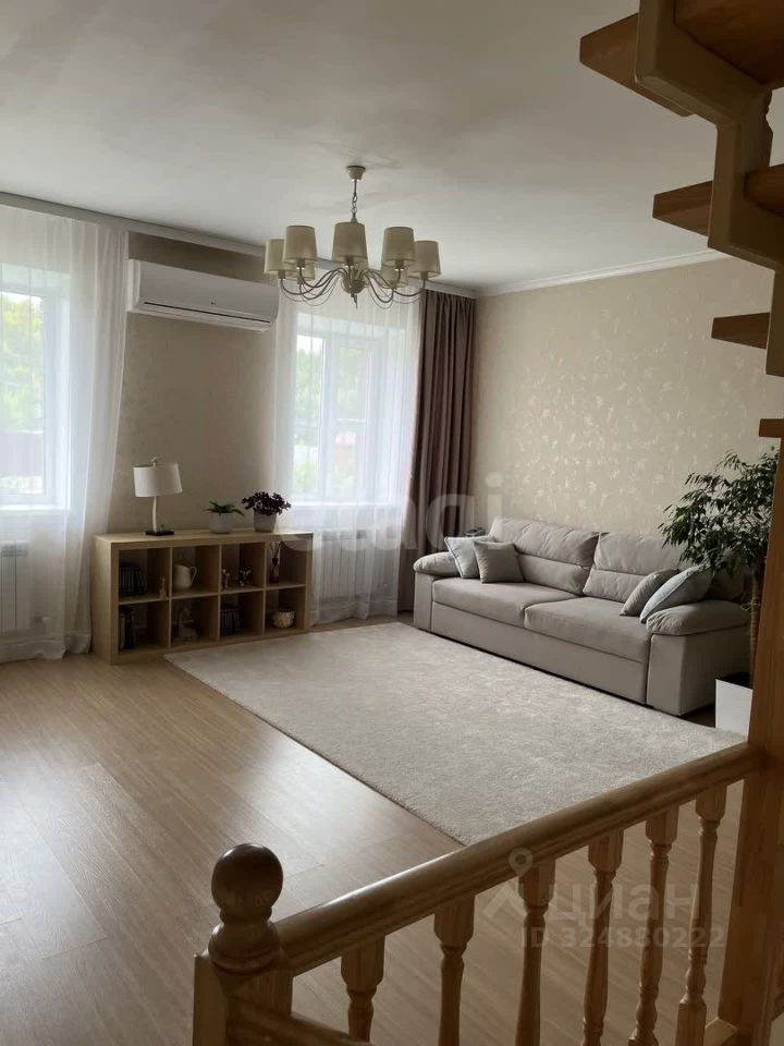 Таунхаус построен из кирпича, имеет два этажа и мансарду. Фасад отделан декоративным кирпичом и утеплен. В доме есть центральное водоотведение, скважина и электрический котел.