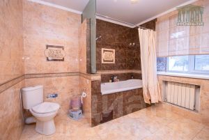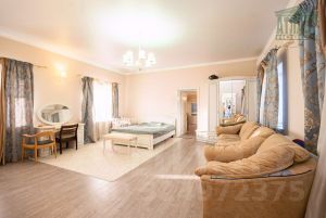 Расположен на земельном участке площадью 1975 кв.м. с многочисленными постройками: гостевой дом 98.8 кв.м, баня, шашлычный домик, беседка, дом(хозяйственная постройка), в доме много гардеробных, большое количество ванных комнат и санузлов, комната для сушки белья, постирочная, спортзал и т.д..