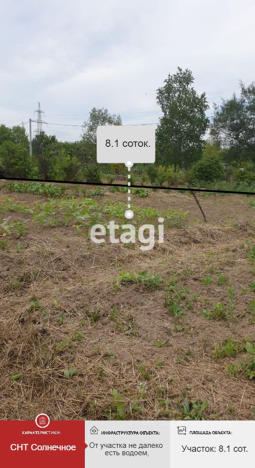 Продам участок 8,1 соток, декларированная площадь. От участка не далеко есть водоем, Удобные подъездные пути. Весь СДТ находится под круглогодичной охраной. Земля в собственности все документы в порядке. Есть возможность подключения электричества. Земля очень плодородная, отличный урожай. Есть ягодные посадки. Подходит под строительство дома, дачи, котеджа. Ориентировочный адрес Хабаровский край, р-н Хабаровский, СДТ "Солнечное", в районе пл.Садовая уч.442