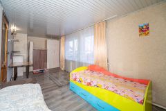 Дом площадью 118.7 кв. м расположен на тихой улице в развитом районе с полной социальной инфраструктурой: школа через дорогу, детские сады, академический лицей, поликлиника, аптеки и магазины находятся в шаговой доступности. Автобусная остановка в минуте ходьбы обеспечивает отличную транспортную доступность. Участок 6 соток полностью благоустроен: здесь разместились зона отдыха, бассейн, теплица и гараж. Фасад дома утеплен базалитом и обшит сайдингом, установлены пластиковые окна и кондиционер.