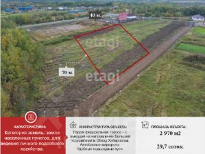 Категория земель: земли населенных пунктов, для ведения личного подсобного хозяйства. Радом федеральная трасса с выходом на направление Большой Уссурийский и Обход Хабаровска.