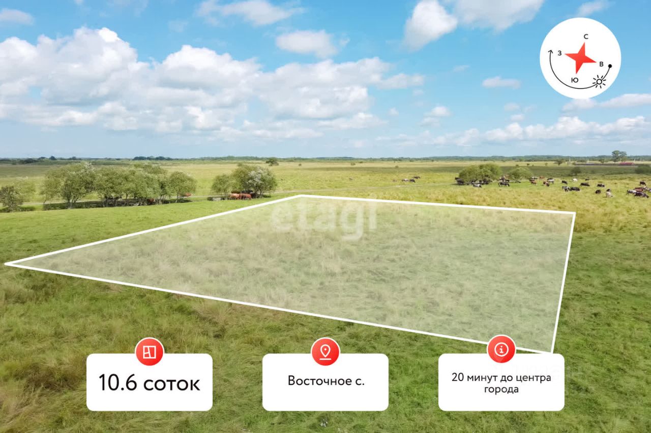 Предлагается к продаже земельный участок 10,6 соток в экологически чистом районе в с. Восточное. Идеально подходит под строительство загородного дома или коттеджа. До центра города всего 20 минут на машине. Рядом с участком есть высоковольтный столб, что обеспечит быстрое подключение к электричеству, а также есть возможность бурения скважины и установки ограждения.