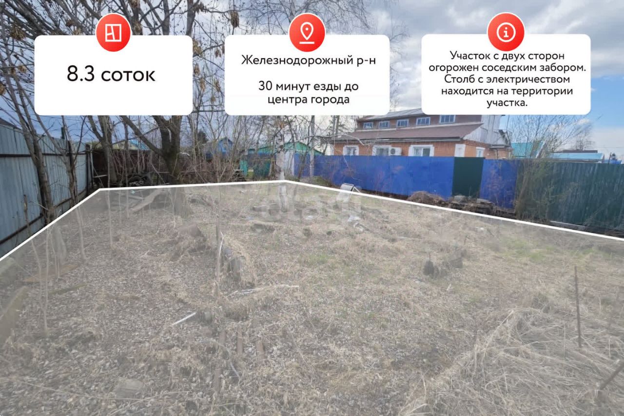 Участок с двух сторон огорожен соседским забором. Столб с электричеством находится на территории участка.