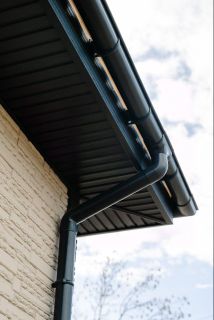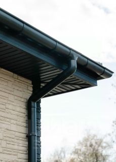 Фасад отделан дорогими качественными фасадными панелями, смонтирована водосточная система, софиты.