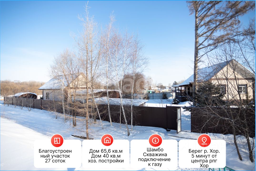 Продается усадьба, состоящая из двух отдельных домов из бруса лиственницы на едином участке площадью более 27 соток с прямым выходом к реке Хор. Основной дом площадью 66 кв. м и гостевой дом на 40 кв. м обеспечивают комфортное размещение для семьи или возможность организации частного гостевого бизнеса. В каждом здании грамотно спланировано пространство: спальня, санузел и совмещенная кухня-гостиная. Внутренняя отделка и мебель выполнена из дерева, создавая теплую атмосферу, а экстерьер дополнен стилизованным японским фасадом. Инженерное обеспечение: собственная скважина и локальная канализация, электричество - 15 клв, отопление - электрокотел, можно подключиться к газу. Территория полностью благоустроена: здесь есть баня, хозяйственные постройки и выделенная зона под самд и огород. Ключевое преимущество — частный, непроезжий участок на берегу реки с доступом к воде через дамбу, что гарантирует абсолютное спокойствие и уединение. Этот комплекс предлагает редкий баланс полной приватности, развитой инфраструктуры и уникальной природной локации для круглогодичного проживания или отдыха.