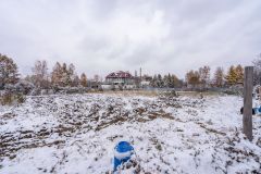 Участок выровнен, правильной формы, огорожен забором из проф. листа.