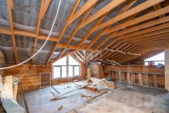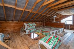 Дом стоит на фундаменте из железно-бетонных блоков 600 на 600, 1-й и 2-й этаж выстроен из бруса 180 на 180, пластиковые окна, утеплитель базалит 100 в 2 слоя, кровля металлочерепица.