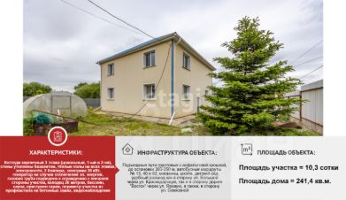 Дом построен в 2017 году, имеет три уровня: цокольный этаж, первый и второй этажи с выходом на террасу. Участок земли площадью 1030 м² полностью благоустроен.