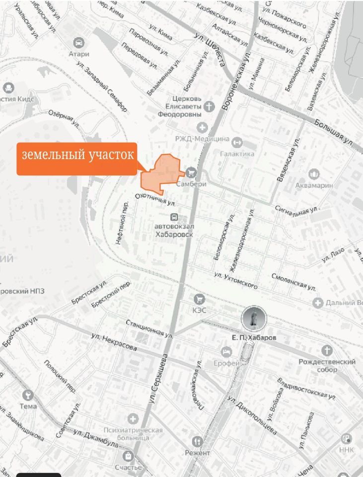 * Локация: г. Хабаровск, пересечение ул. Воронежской и ул. Камской (кад. номер: 27:23:0000000:31110). Участок расположен непосредственно ТЦ "Воронежский".