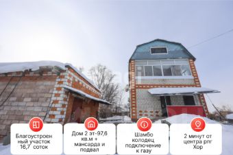 Продается капитальный кирпичный дом общей площадью 97,6 кв.м на участке в 16,7 соток. Дом предлагает продуманную двухэтажную планировку с дополнительной мансардой, которую можно обустроить под летнюю гостевую зону или кабинет. На территории расположен просторный глубокий погреб 3х4 метра для хранения урожая и запасов, а также комплекс надворных построек: капитальный гараж на два автомобиля, летняя кухня и готовое строение под баню. Гибкая система отопления, включающая электрокотел, твердотопливный и жидкотопливный котлы, что гарантирует энергонезависимость и контроль над расходами в любое время года. По улице ведётся газовая магистраль, предоставляющая возможность для дальнейшей модернизации. Объект идеально подходит для проживания семьи, ценящей автономность, пространство и практичность. Рассматривается вариант обмена на двухкомнатную квартиру в поселке Хор. Оказываем полное сопровождение сделки и юридическое оформление документов.