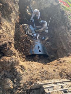 Труба для сточных вод на въезд, взяли длиной 6 метров 30к.