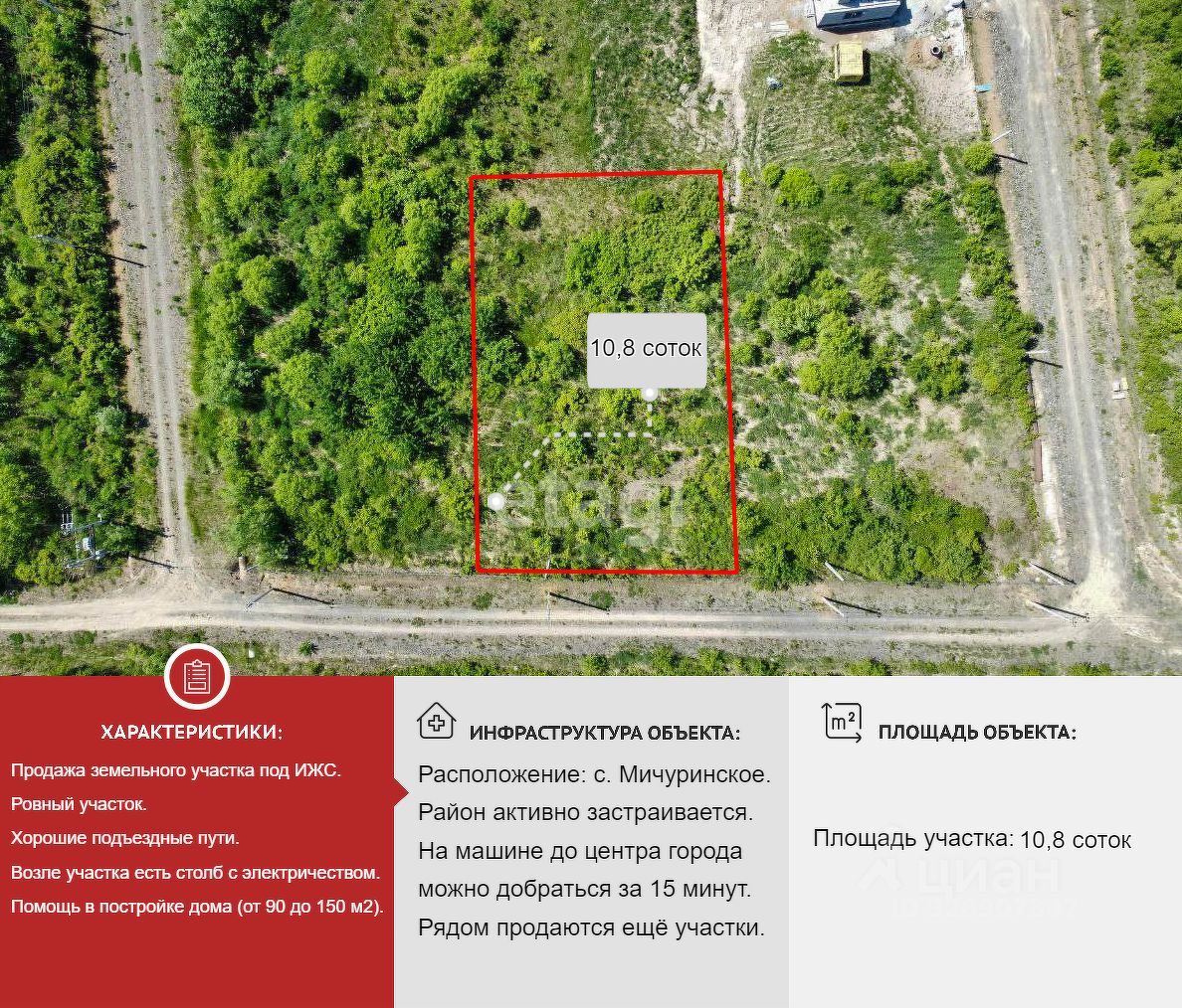 В продажу вышел отличный, ровный участок, правильной формы, площадью 11 соток. Под индивидуальное жилищное строительство! Хорошие подъездные пути. Возле участка есть столб с электричеством. Район активно застраивается. На машине до центра города можно добраться за 15 минут. Звоните, покажу в любое время! Помощь в одобрении ипотеки, полное юридическое сопровождение сделки. Помощь в постройке дома ( от 90 до 150 квм) с последующей помощью в постановке дома на кадастровый учет .