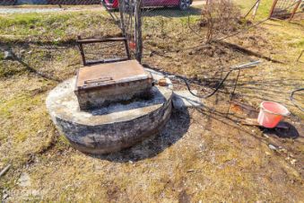 выкопан колодец, воду качают насосом;