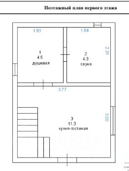 1-ый этаж: гостиная, душевая, парная.