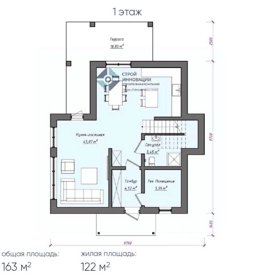 Площадь дома с террасой — 163 м²