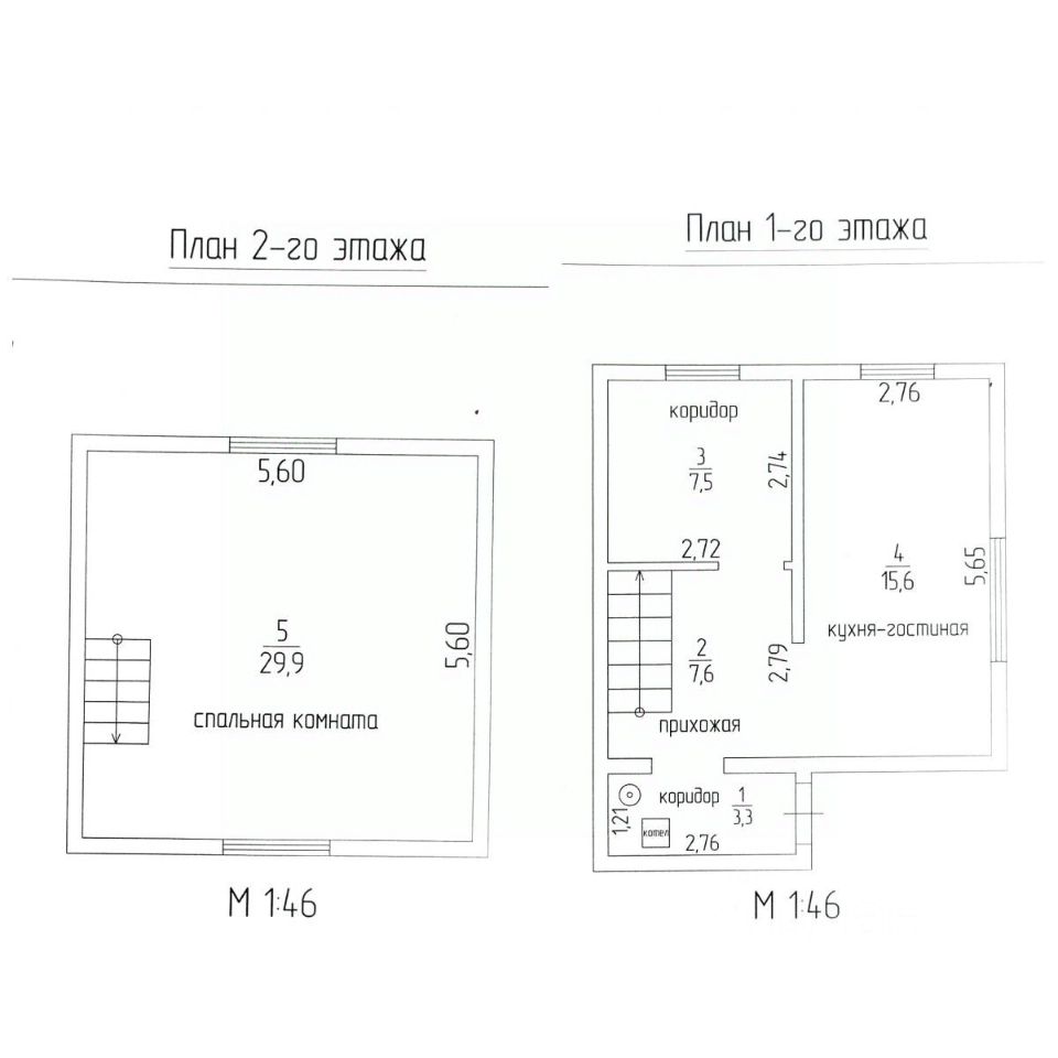 2 этажа: 1 этаж комната-студия, 1 спальня, холл;