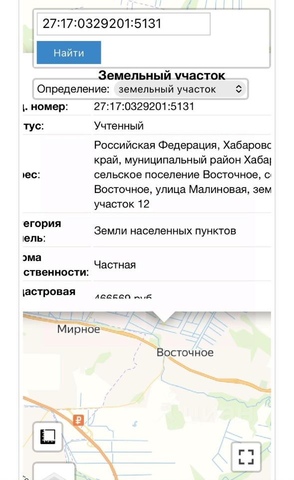 Предлагаем к продаже земельный расположенный в с. Восточное, ул. Голубичная участок 31. Участок под ИЖС, нет никаких ограничений, разрешено строительство дома до 3х этажей. Столб с электроэнергией у участка, есть подъездные пути. На участке ничего еще не сделано, ровный, правильной прямоугольной формы. Этот район интересен , его начали осваивать, есть строения, появились названия улиц, номера участков, так что перспектива большая!!! В собственности, один взрослый собственник. Документы готовы. ПОДХОДИТ ПОД ДАЛЬНЕВОСТОЧНУЮ и СЕЛЬСКУЮ ИПОТЕКИ! Мечтаете о своем земельном участке недалеко от Хабаровска? Надоели шумные соседи? Хотите жить в своем собственном доме в отдалении от городской суеты? Ловите МОМЕНТ!!! Это Ваш шанс начать новую жизнь и проживать в одном из самых экологически чистых районов за доступную цену и реализовать мечты о собственном доме!