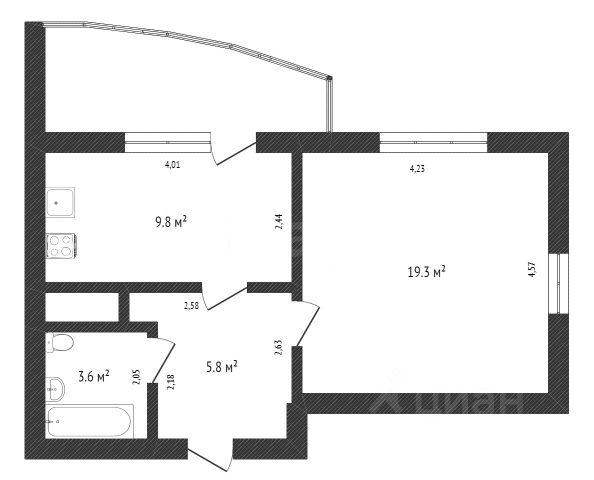 От года, комм. платежи не включены, комиссия 60%, залог 40 000 ₽