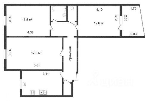 От года, 60 000 ₽ + 10 000 ₽ комм. платежи (без счётчиков), комиссия 50%, залог 30 000 ₽
