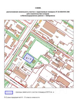 Земельный участок с местоположением: Хабаровский край, г Хабаровск, ул Автономная. Вид разрешенного использования Склады. Кадастровый номер - 27:23:0041815:360. Площадь 6 253 кв. м. Форма собственности неразграниченная. Катег...
