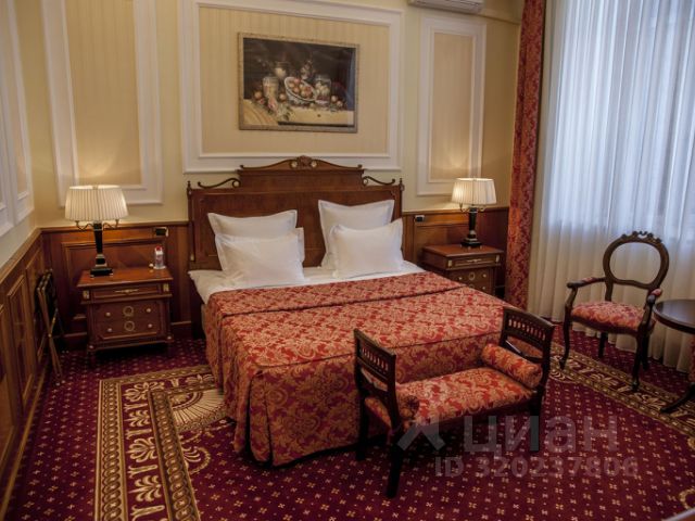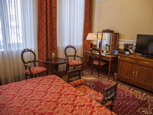 Однокомнатный номер. В интерьере использованы красные тона. Несмотря на то, что номер состоит из одной комнаты, он грамотно зонирован и визуально делится на рабочую часть с письменным столом и настольной лампой, гостиную с мягкой удобной мебелью, где можно угостить гостей чашечкой ароматного бодрящего кофе "эспрессо" (номер оборудован капсульной кофе-машиной), а также спальню с кроватью размера "king-size".