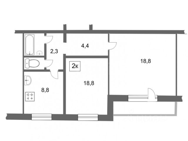 Распашонка. Окна в квартире выходят на обе стороны. Почти 40 квадратов! Квартира очень просторная.