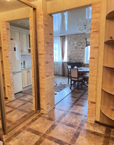 На кухне хороший дорогой ламинат, стилистика под коричневые тона, стены - кирпич, коридор полностью отделан плиткой, везде стоят премиальные деревянные двери, поклеены дорогие обои, в сан узле есть всё необходимое, новый унитаз, новая ванна, котёл для подогрева воды, зеркало. Всё делали под себя, поэтому будем требовать и соответствующего отношения к квартире.