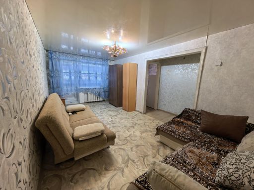 Сдаётся уютная однокомнатная квартира на третьем этаже кирпичного дома. В квартире выполнен косметический ремонт, что создаёт приятную атмосферу. Просторная комната оборудована двумя диванами, а также вместительным шкафом для хранения вещей. Из мебели есть необходимая кухня с холодильником и плитой. Санузел совмещённый, оснащён ванной и стиральной машиной. В прихожей предусмотрены удобные полки для верхней одежды. Есть бплкон, что позволяет наслаждаться свежим воздухом даже зимой. Парковка открытая во дворе, что удобно для владельцев автомобилей. Курение в квартире запрещено, но можно проживать с детьми. Животные не допускаются.