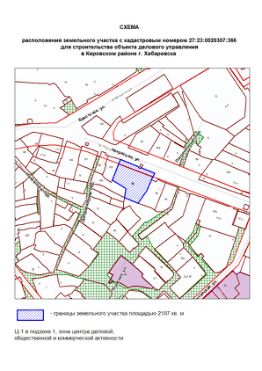 Земельный участок с местоположением: Хабаровский край, г. Хабаровск, ул. Некрасова. Вид разрешенного использования деловое управление. Кадастровый номер - 27:23:0020307:366 Площадь 2187 кв. м Форма собственности неразгранич...