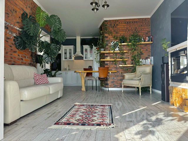 В квартире свежий ремонт. На первом этаже расположена кухня и обеденная зона с диваном, на втором спальня и зона отдыха с видом на город. Для тепла и уюта есть настенный камин. Два полноценных санузла, с душем и ванной — на первом и втором этажах соответственно. Две небольших гардеробных.